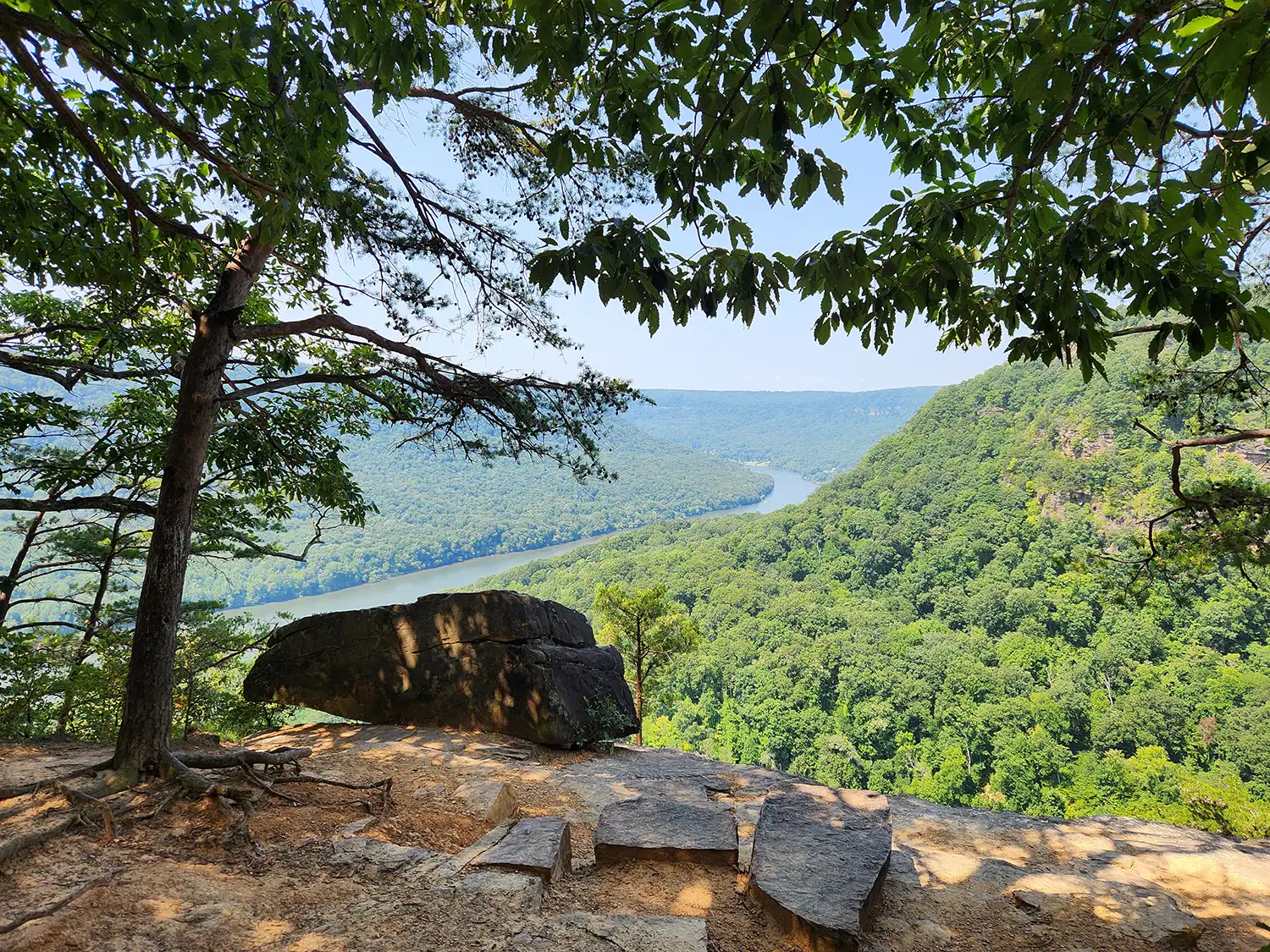The next popular spot you will come across is the Julia Falls overlook. It is a part of the trail that opens up to views of the Tennessee River as it winds through the valley. As you continue down the trail, you will start going more into the mountain itself rather than hiking near the ridge line.